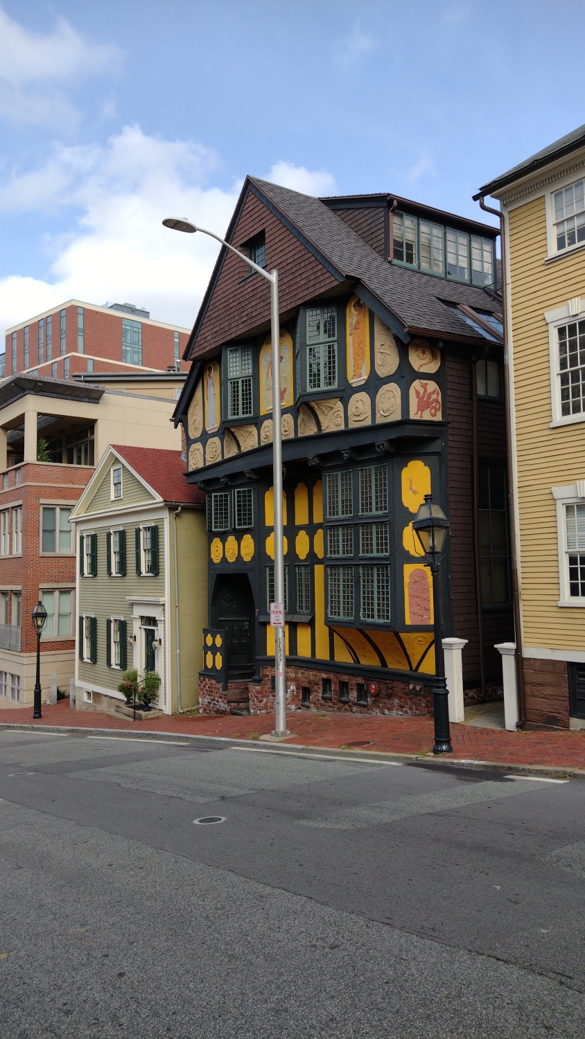 Cestou zpět jsme se zastavili ještě u ateliéru Fleur-de-Lys. V knize Volání Cthulhu je popsán jako „ohavná viktoriánská napodobenina bretonské architektury sedmnáctého století, která se chlubí svou štukovou fasádou uprostřed krásných koloniálních domů na starobylém kopci“. A ano, fakt to není hezký pohled. Na druhou stranu americká města mají svou estetiku, a to většinou takovou, že žádnou nemají.