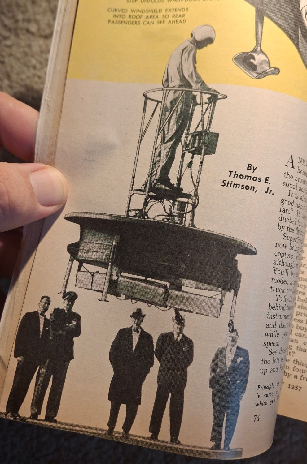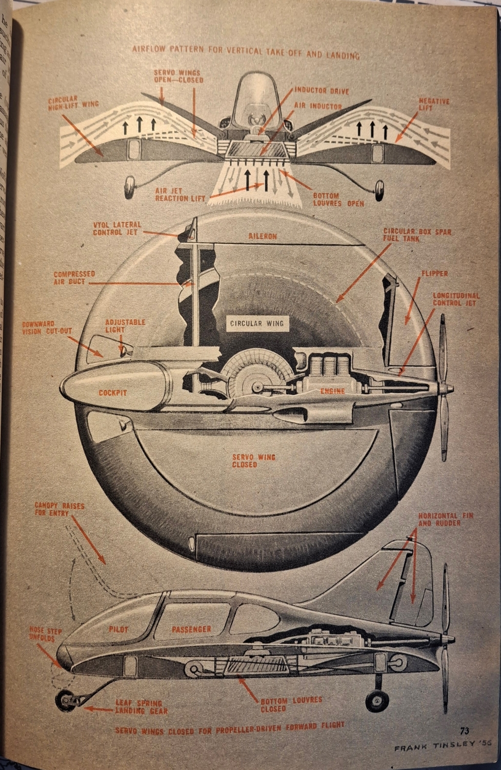 Takový byl nadpis článku Franka Tinsleyho z roku 1955. Článek začíná tvrzením, že už za pět let bude možné koupit si vlastní létající talíř. Malý osobní stroj, který bude „parkovat na dvorku a odstartuje z příjezdové cesty“.