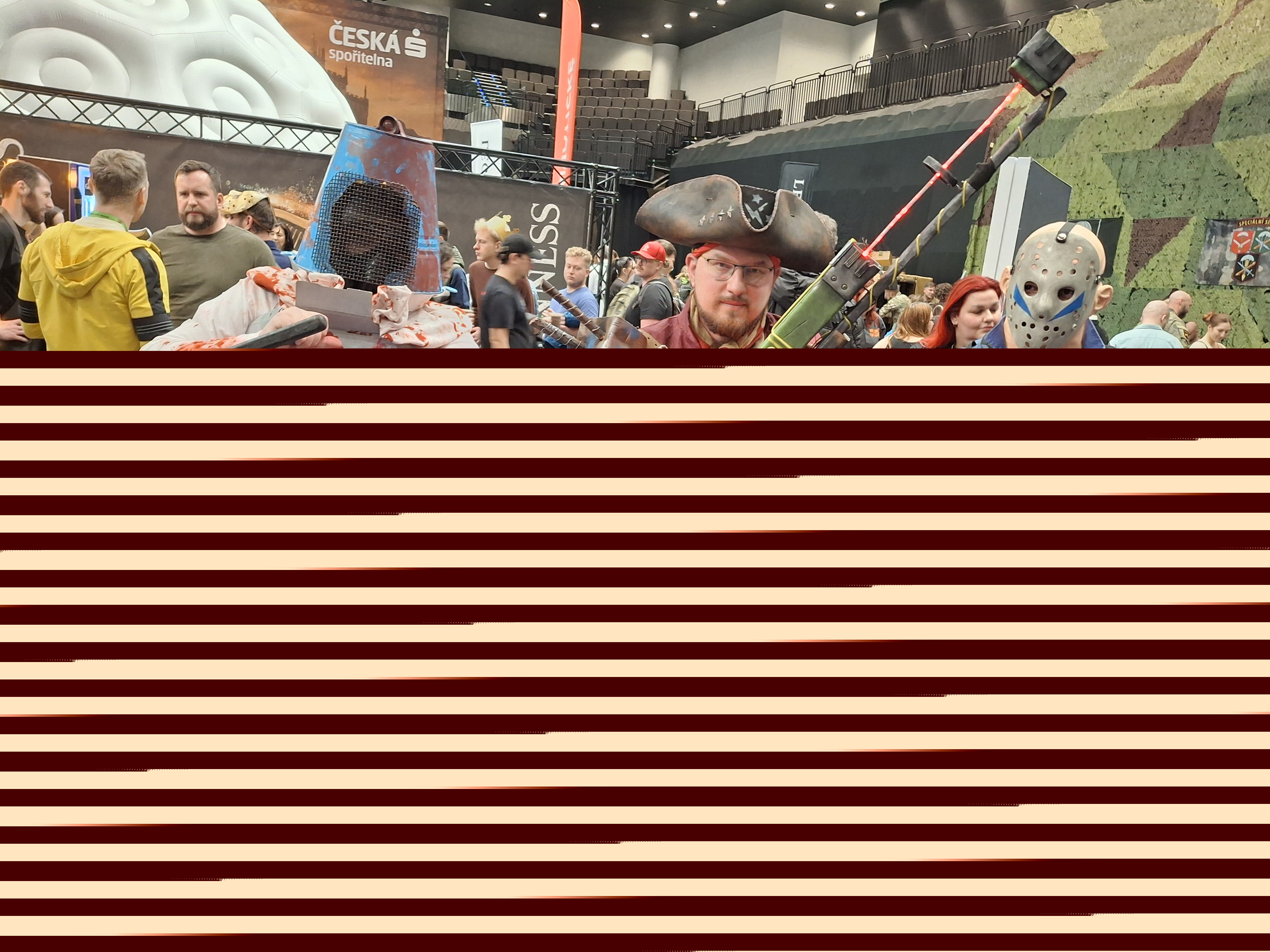 Vedle byla hra Days of Reckoning, navazující na legendu Spellcross. U ní opravdu doufám v úspěch. A poslední hrou, kterou si pamatuji, je Prší. Zní to nudně, ale není. Nejen že hrajete s hosty v jedné hospodě, ale ještě z nich taháte jejich životní příběh, takže je to taková karetní detektivka. Kvůli poflakování v téhle sekci jsem úplně vynechal Iana Glena, což mě ani moc nemrzí, ale prý to bylo ucházející. Co bylo fenomenální, byla vtipná a dojemná hudební přednáška Billyho Boyda a opět mě fakt štve, že jeho pořad u nás není dostupný. Pak už jsem odchytil posledních pár lidí na cosplay fotku (například Gandalfa nebo Bábu pod kořenem) a bylo na čase takzvaně „zavřít krám“.