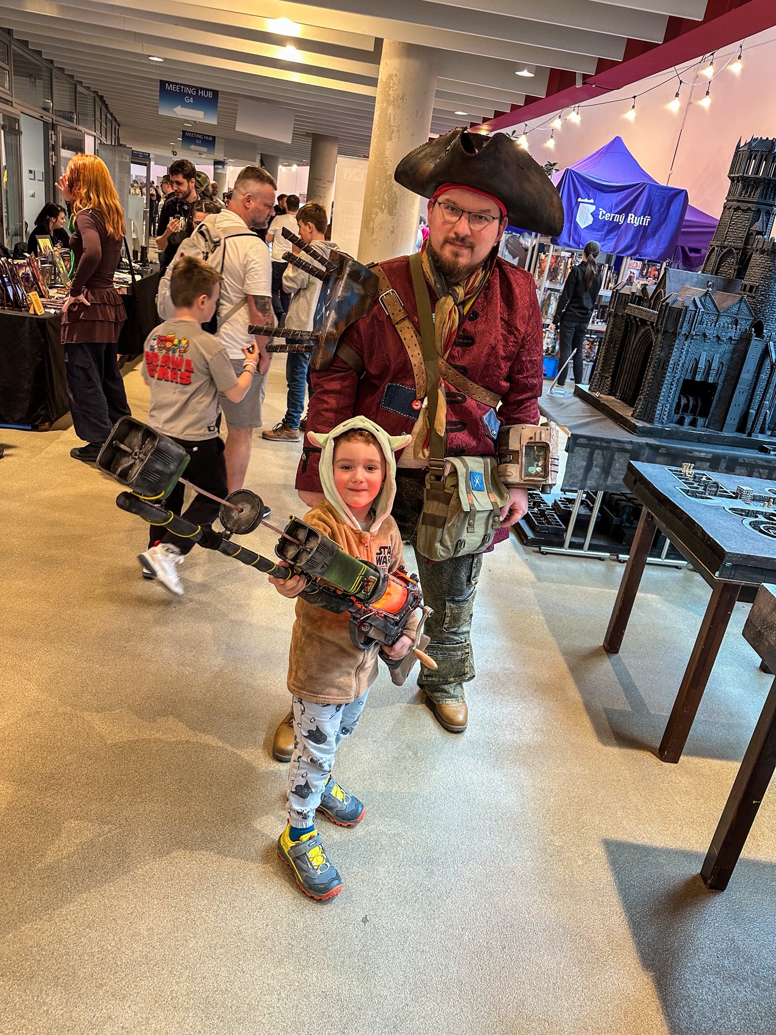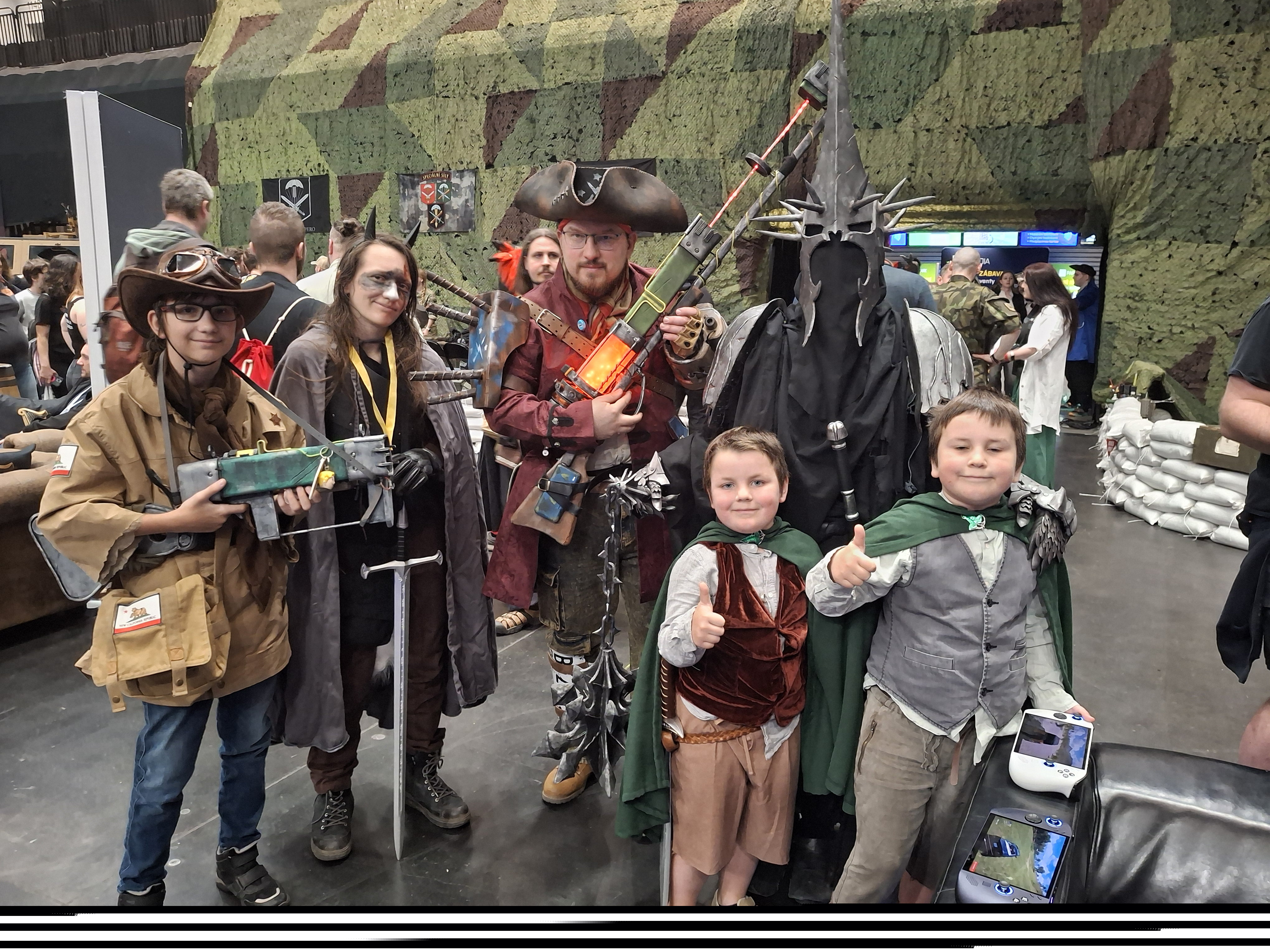 Sobota pro mě byla volnější a nesla se ve znamení hraní a setkávání s ostatními cosplayery. Podobně jako loni jsme třeba potkali královnu Angmaru s jejími hobbity, která minulý rok soutěžila v PragoCosplay, a další cosplayery. Také jsme prošli zónu 3D tisku a nabrali nějaké ty cetky. A čekala nás i další „stanoviště“ ve spodní sekci, která byla určená hlavně pro dětské publikum, ať už to byla prezentace armády a policie, nebo firemní stánky Pom-Bär a Redbullu. U těch je většinou test nebo úkol a dostanete za to občas i nějakou pochutinu. Pak jsme se přesunuli do skoro čistě videoherní sekce, prošli jsme výstavu velmi detailních polských modelů Star Wars lodí a potkali jsme jednoho youtubera, který se zabývá FC 26. A co se týká zážitků, to pro nás v podstatě byla konečná. Památných momentů bylo hodně, o tom žádná, ale s malým hráčem je to nakonec o diskuzi, zda je FC26 lepší na Nintendu nebo PlayStationu. (Za mě vede Nintendo.)