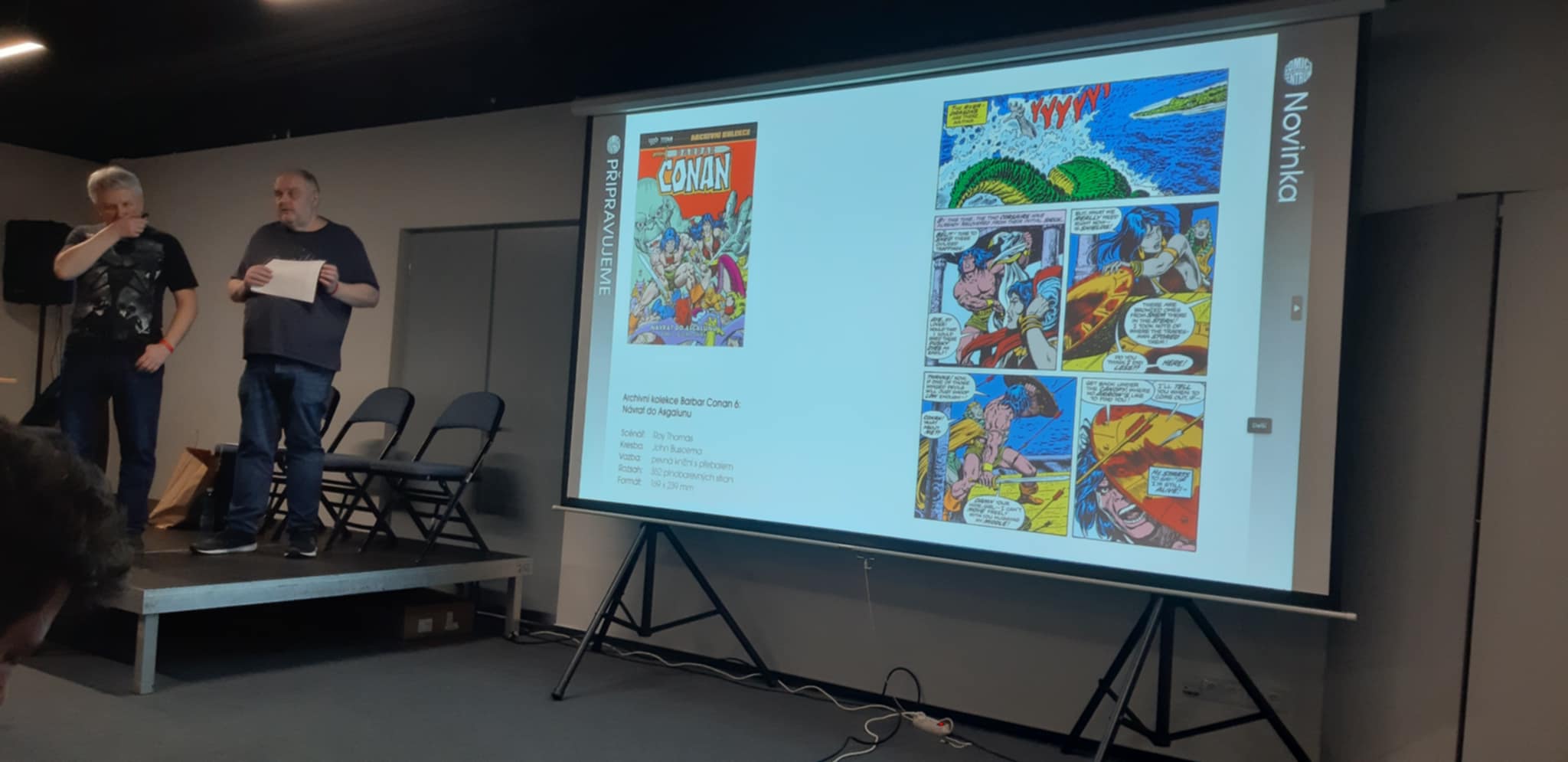 Po Michaelovi jsem měl konečně možnost projít zbytek conu, abych věděl, kde co je. Zbytek nechávám na další dny. Co kvituji, je malá merch zóna. Neberte to špatně, já mám merch rád a kdyby ho bylo víc, asi by mě to i více stálo, ale po zkušenosti z Vídně, kde byl skoro celý con jakési tržiště se sály okolo, musím říct, že pražský Comic-Con má prostory vychytané líp. V postranních chodbách u merch zóny jsou různá malá nakladatelství. Kromě toho jste si zde také mohli nabarvit miniatury (opět pár možností utratit peníze). V další malé sekci se nacházeli komiksoví autoři - ti čeští byli zastoupeni hlavně Danem Černým, který lákal na svůj dubnový Černocon, a taky Nikkarinem nebo Petrem Koplem. Vrchní patro pak obsadily další videohry, také hromada deskovek a spousta malých přednáškových sálů z různých fandomů.